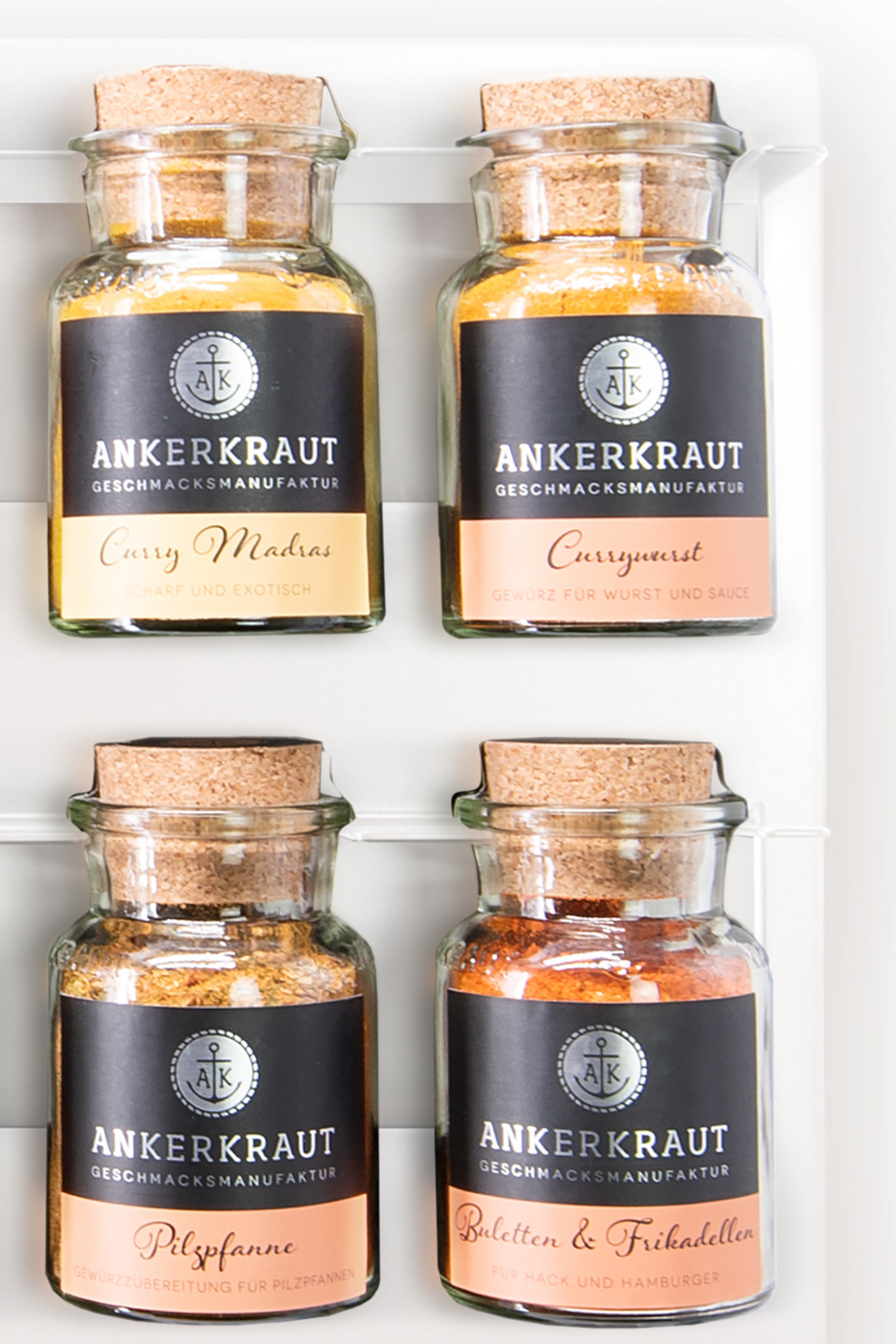 - Entwicklung eines exklusiv Wandregals maßangefertigt für Glas-Gewürzgläser mit Korken