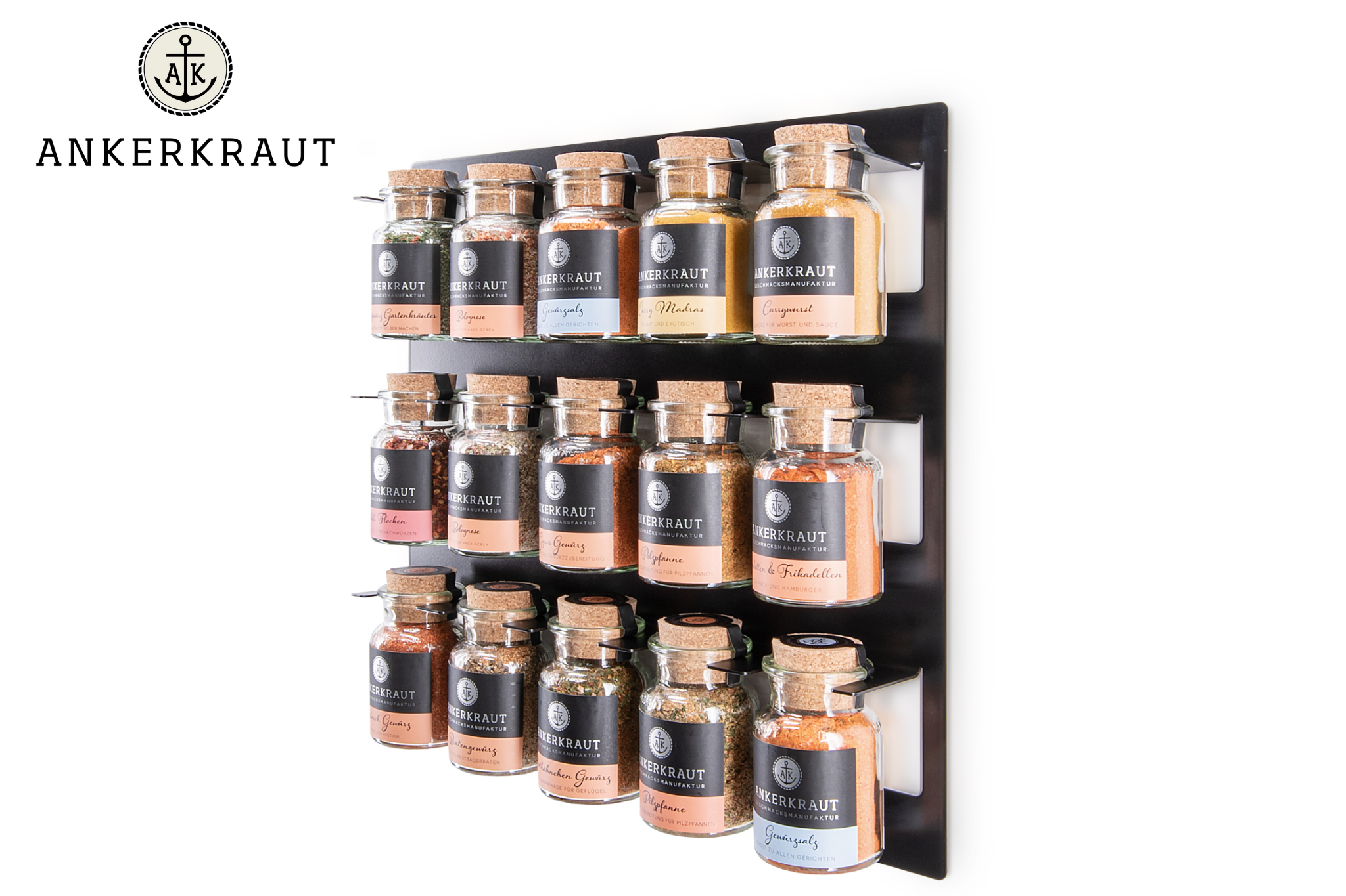 - Fassungsvermögen von bis zu 15 Gewürzgläsern